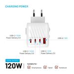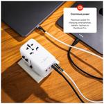 Zaobstarali ste si mobil, tablet či iné zariadenie v cudzej krajine a zástrčka nepasuje do vašej zásuvky? Využite univerzálny vstup na adaptéri. Nájdete na ňom tri USB-C a jeden USB-A port s celkovým výkonom 120 W. Vďaka nim môžete nabíjať až 4 zariadenia naraz . Pomocou jedného USB-C1/USB-C2 portu s výkonom až 100 W si nabijete aj MacBook Pro a ďalšie zariadenia s veľkým výkonom.