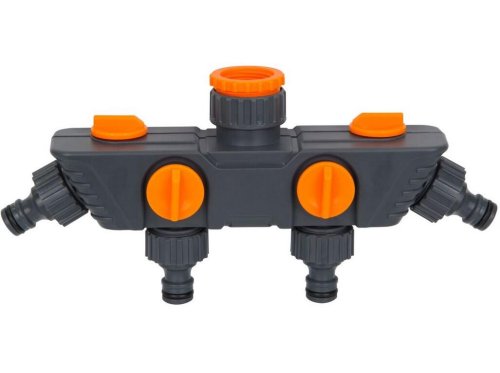 Vďaka tomuto adaptéru zvládnete zavlažovať záhradu z jedného kohútika až štyrmi záhradnými hadicami a pokryjete tak pomerne veľkú plochu.