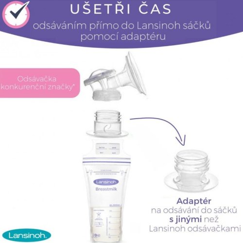 Vďaka tejto pomôcke môžete odsávať materské mlieko priamo do Lansinoh sáčkov!