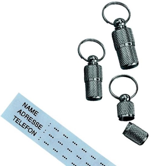Pripevnite vyplnený adresár krúžkom k obojku.