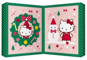 Adventný kalendár Hello Kitty-24 okienok plných kozmetických prekvapení s detskými, šetrnými receptúrami. Obsah: 2× balzam na pery (každý 4 g), 3× lesk na pery (každý 2 ml), 3× rúž (každý 1,5 g), 3× trblietavý krém (každý 2,5 g), 4× detský lak na nechty (každý) 2× sponka do vlasov, 2× gumička na vlasy alebo náramok, 1× oddeľovač prstov na nohách, 1× scrunchie gumička, 2× kovová sponka do vlasov.