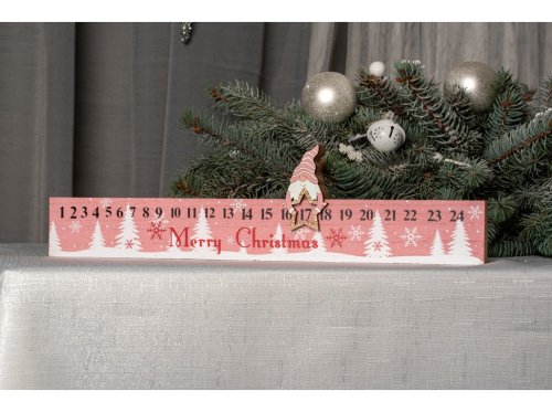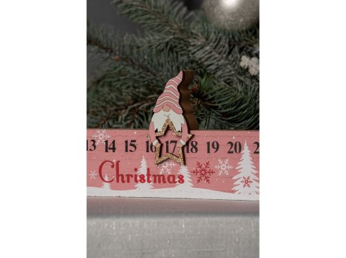 Adventný kalendár drevo 400x105mm, prírodná, ružová, biela