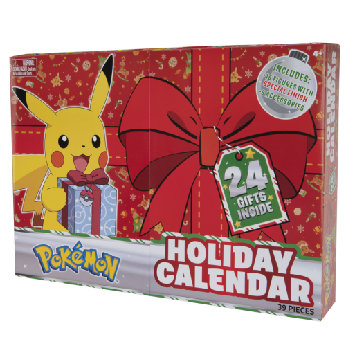 Pokémon adventný kalendár obsahuje 16 figúrok + ďalšie príslušenstvo. Každý deň prinesie nové prekvapenie, pretože keď otvoríte dvierka s ďalším číslom, nájdete za nimi figúrku Pokémona (celkom je tam až 16 rôznych hrdinov, medzi nimi Pikachu, Squirtle, Bulbasaur a Eevee) alebo predmet spojený s Vianocami (celkom 8)! Adventný kalendár obsahuje až 24 dielikov a určite poteší každého fanúšika Pokémonov!