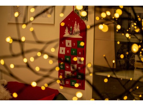 Vneste do svojho domova vianočnú atmosféru s týmto adventným kalendárom z filcu. Farebný dizajn s 24 kapsičkami vám umožní každý deň potešiť deti aj dospelých malou drobnosťou alebo sladkosťou. Kalendár je možné ľahko zavesiť na stenu alebo dvere a zostane vám aj pre ďalšie roky. Skvelý spôsob, ako vytvoriť kúzelnú adventnú tradíciu.