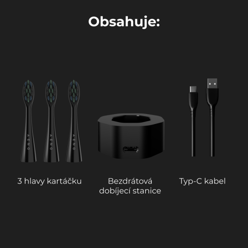 Súčasť balenia: 3 x Hlavica, bezdrôtová nabíjacia stanica, kábel