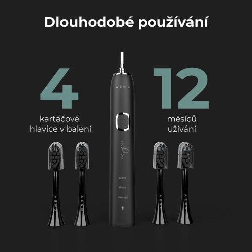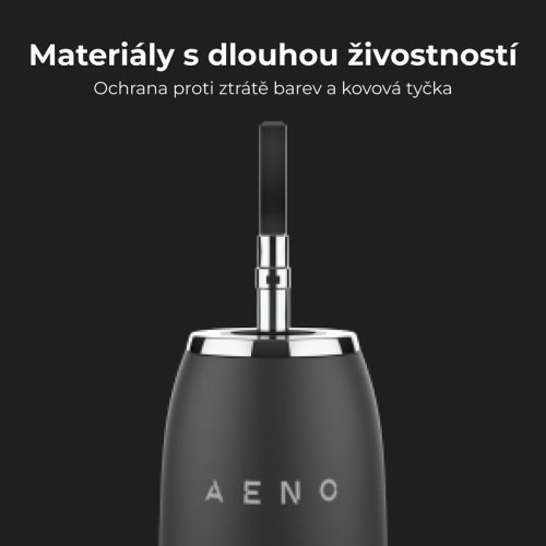 Sonické zubné kefky AENO sú vyrobené z odolných a spoľahlivých materiálov. Telo prístroja má ochranu proti vyblednutiu farby a vo vnútri obsahuje pevnú kovovú stopku.