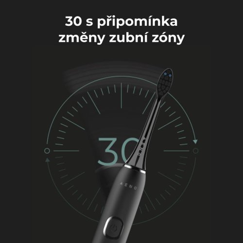 Inteligentný systém, ktorým sú zubné kefky AENO vybavené, vám okamžite pripomenie, že treba 4x za 30 sekúnd zmeniť zónu čistenia zubov pre účinnejšiu hygienu.