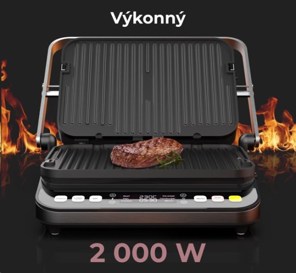 6 automatických programov: hovädzie, rybie, kuracie, klobásy, hamburgery, slanina