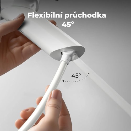 Flexibilná priechodka kábla sa pohybuje v rozmedzí 45?, čo robí naparovač odevov ľahko manévrovateľným. Naparujte bez obáv aj v tých najnáročnejších pozíciách.