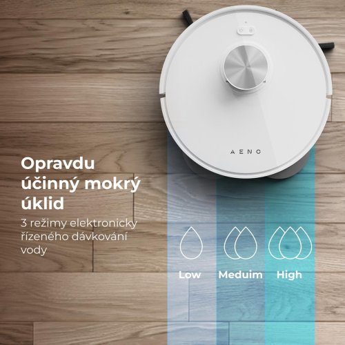 Najbojte sa o bezpečie parkiet. Máte možnosť nastaviť skutočne decentné vlhčenie rotačných mopov. 3 režimy prietoku vody riadené elektronicky poskytnú efektívne a bezpečné čistenie pre rôzne typy podláh a množstvo neporiadku.