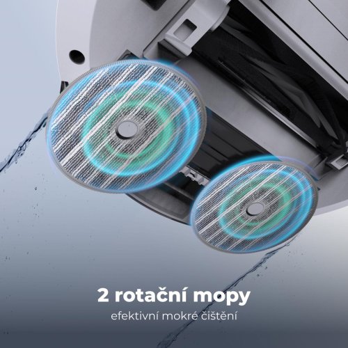 Duálny mop jednoducho odstráni fľaky a špinu z tvrdej podlahy. Narozdiel od jednoduchého stierania u bežných robotických vysávačov, rotačné mopy starostlivo vydrhnú podlahu a zanechajú ju bez najmenších škvŕn.