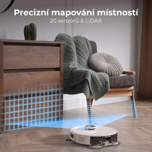 Menej času potrebného na úkid. Navigácia LiDAR a 20 senzorov (infračervený, kolízny, proti pádu, gyroskop, proti nárazový,...) urobí prácu vysávača oveľa presnejšie a bezpečnejšie pre neho aj okolie. Všetky objekty v miestnosti sa ukladajú do pamäte a upratovanie je tým nabudúce oveľa efektívnejšie pri vyhýbaní sa objektov.