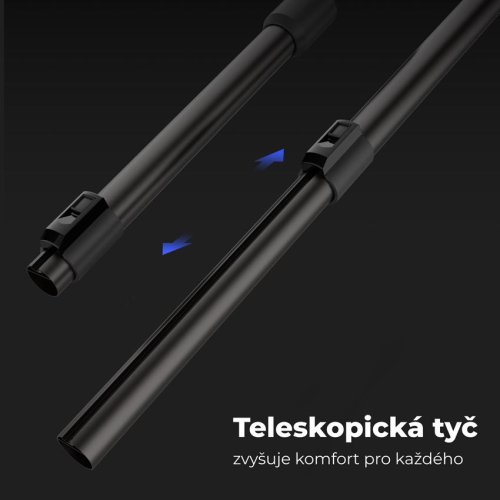 Kovovú trubicu je možné posunutím nastaviť na požadovanú dĺžku pre pohodlné vysatie všetkých priestorov.