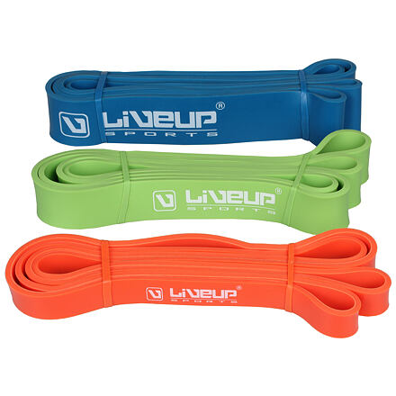 Posilňovacie gumy LiveUp 208 cm (obvodová dĺžka) x 0,45 cm nájdu využitie pri všetkých druhoch tréningu, pri ktorých sa vykonávajú naťahovacie a posilňovacie cviky celého tela. Aerobic gumy LiveUp 208 x 0,45 cm sa vyrábajú v troch rôznych farbách / šírkach (oranžová / 2,1 cm; zelená / 3,2 cm; modrá / 4,5 cm), pre docielenie progresívneho cvičenia. Odpor Light (oranžová): 11 – 30 kg Medium (zelená): 16 – 38 kg Heavy (modrá): 23 – 57 kg