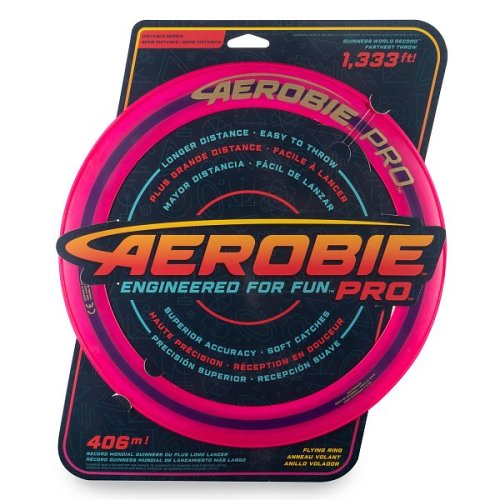 Pre zábavnú hru s lietajúcim diskom sa nič nevyrovná vysokému výkonu Aerobie Pro Ring. S týmto lietajúcim diskom bol vytvorený svetový rekord v hode do diaľky, a to úžasných 406 metrov. Tenký dizajn tohto lietajúceho disku mu umožňuje prejsť dlhšiu vzdialenosť. Aerobie Pro je vybavený mäkkými okrajmi pre pohodlné chytanie. Otvorený stred umožňuje každému hráčovi prispôsobiť si štýl hádzania a chytania – chytať hranu rúk alebo používať stred na chytanie rúk či nôh. Vytvorte si vlastné osobité štýly s lietajúcimi diskami Aerobie. Tento disk nepláva vo vode. Jazykové mutácie: SK, SK, EN, ESP, DE, PL, IT. K dispozícii v rôznych farbách. Assort je náhodný mix modelov. Výber nie je možné ovplyvniť. Rozmery disku: Ø 35,6 cm. Vek 12+