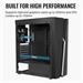 Dodáva sa s bočným panelom z tvrdeného skla, ktorý predvádza vnútro vašej súpravy. Predný panel v štýle uhlíkových vlákien dodáva vašej zostave futuristický vzhľad.
