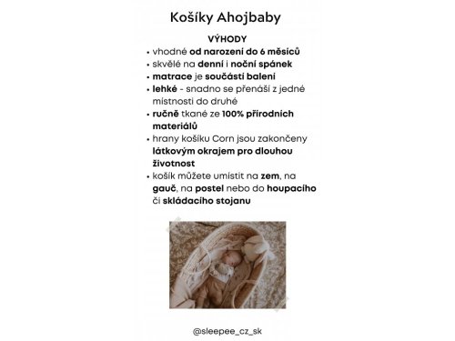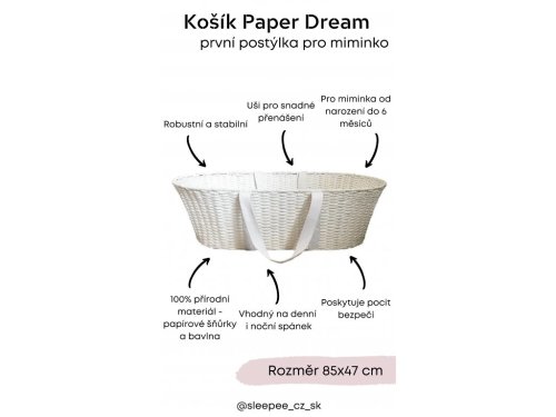 Mojžišov košík pre bábätko Paper Dream White od značky Ahojbaby je dodávaný vrátane certifikovaného matraca s prateľným poťahom Basic. Košík je vhodný pre bábätká od narodenia. Je ľahký, skladný a ľahko sa prenáša, takže môžete mať bábätko neustále nablízku. Košík poskytuje dieťatku bezpečné miesto na denný odpočinok aj nočné spanie. Je vyrobený zo 100% prírodného materiálu a je ručne tkaný.