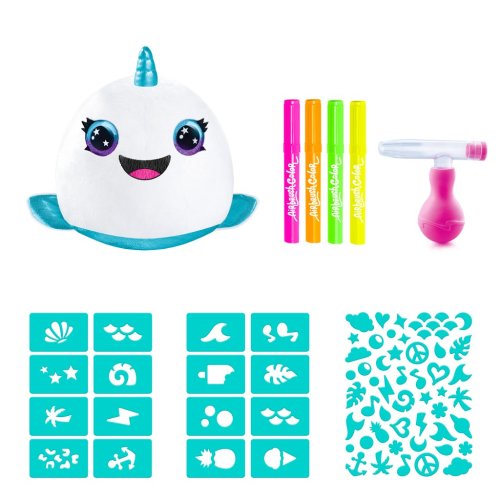 Airbrush kreatívna sada Neon skvele zabaví každého. Vnútri balenia nájdete jedného plyšáka o veľkosti 15 cm, airbrush nástroj, 4 fixy a 70 šablón, s ktorými môžete plyšáka vyzdobiť podľa svojej fantázie. Keď vás dizajn omrzí, stačí plyšáka vyprať podľa návodu a po uschnutí môžete znova tvoriť. Plyšák v balení je prekvapenie, séria obsahuje 3 druhy plyšákov.<br> Vhodné pre deti od 6tich rokov.