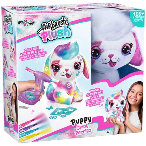 Navrhni a vyfarbi si svojho psíka Plyšové zvieratko si môžeš pomocou airbrush ľubovoľne posprejovať, môžeš využiť rôzne farby a šablóny Ak sa ti vytvorený design prestane páčiť, stačí plyšáka umyť vodou a môžeš začať znova