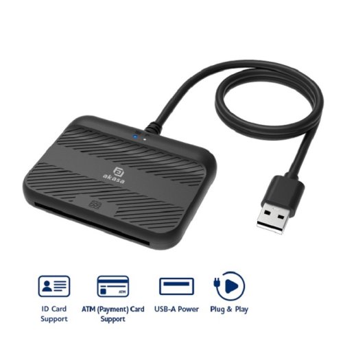 Akasa externá čítačka kariet čítačka kariet pre online bankovníctvo, digitálne podpisy a aplikácie pre smart karty