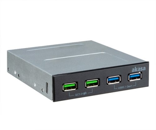 AKASA 4portový USB nabíjací panel s dvoma portami Quick Charge 3.0 a dvoma portami USB 3.1 Gen 1. Duálne porty rýchleho nabíjania QC 3.0 - každý port poskytuje výkon až 18 W a využíva technológiu Intelligent Negotiation for Optimum Voltage (INOV) pre efektívny a optimálny prenos energie do pripojených zariadení.