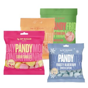 50 g (1 sáček) broskev malina-citron (sour skulls) jahoda-vanilka (berry canes)