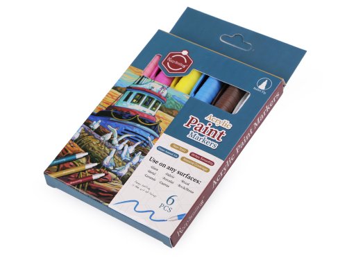 Akrylový popisovač má vysokú kryciu schopnosť, je rýchloschnúci. Je vhodný na povrchy ako je papier, kameň, drevo, textil, plátno a kov. Môžete ho použiť aj na plochy bez základnej farby, na očistený, odmastený a suchý povrch. Vyznačuje sa jednoduchou aplikáciou, je určený na vnútorné použitie. Náš tip: skúste techniku bodkovania, akrylové popisovače sa výborne hodia na bodkované mandaly. Popisovače s vysoko pigmentovaným akrylovým atramentom rýchlo schnú, nemusíte sa báť, že sa pri maľovaní rozmažú. Vytvorí veľmi odolný nepriehľadný a lesklý povrch na svetlých aj tmavých povrchoch. Popisovače so strednou guľatou špičkou sa ľahko ovládajú, sú vhodné pre polotučné čiary a kreslenie väčších detailov aj vyplňovanie veľkých plôch. Súprava č. 1 - oranžová, fialová svetlá, zelená, červená, fialová tmavá, čierna farba.