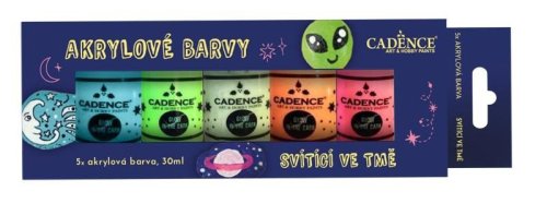 Akrylové farby Glow in the Dark nie sú úplne krycie, nanášajte ich vo viacerých vrstvách alebo na podklad už podmaľovaný akrylovou farbou. Vhodné na všetky povrchy, na rozmanité projekty. V, mäkkom stave sú farby riediteľné vodou, v zaschnutom stave sú naopak vodeodolné. Farby sú všestranné, môžeme ich nanášať nielen v tenkých vrstvách, ale aj v pastóznych náteroch s textúrnymi efektmi. Akrylové farby sú netoxické., TIPY NA POUŽITIE:, * Pred použitím pretrepte fľaštičku s farbou., * Odporúčame naniesť aspoň 2–3 vrstvy alebo farby nanášať na predmet už podmaľovaný akrylovými farbami., * Sada obsahuje 5 farieb, ktoré medzi sebou môžete ľubovoľne miešať a vytvoriť si tak ďalšie odtiene. Farby miešajte tak, že do svetlejšej farby postupne pridávajte druhú - tmavšiu, farbu po troškách, až docielite požadovaný odtieň., * Pri maľovaní na kamienky je potrebné povrch kamienka umyť vodou, prípadne očistiť pomocou kefky., * Akrylové farby rýchlo schnú, preto je dobré mať štetce pono a vysušiť., * Po zaschnutí farieb môžete dokresľovať detaily akrylovými fixkami či bodkovať tekutými perlami., Tip: V ponuke máme aj ďalšie sady akrylových farieb - základné, pastelové, alebo metalické.,