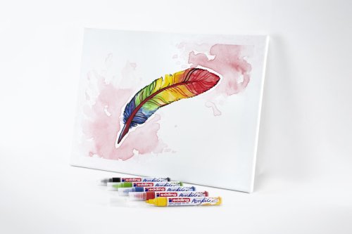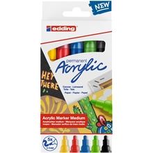 Súprava 5 akrylových popisovačov Edding 5100 v základných farbách Pre spontánnu kreativitu na svetlých aj tmavých povrchoch materiálov ako je plátno, maliarsky papier, hladké drevo a kameň Vysoko kvalitná pigmentovaná …