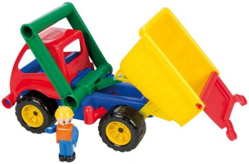 Aktívne auto sklápač z kvalitného plastu a veľmi pevnou stavbou. Je plne mechanicky funkčný. Obsahuje poistku proti nežiaducemu vyklopeniu, odklopiteľnú kabínu a vyberateľného panáčika. Dĺžka: 29 cm. Vhodné pre chlapcov od 3 rokov.