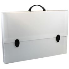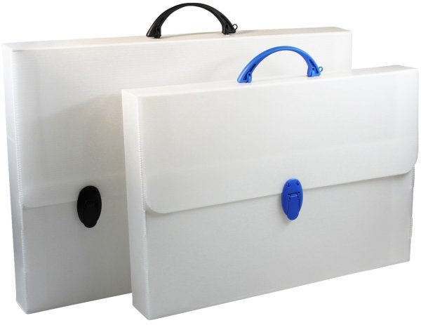 Aktovka s rukoväťou a dvoma zámkami, vhodná na uloženie a prenos dokumentov do formátu A3 Materiál: polypropylén, odolný a umývateľný Hrúbka materiálu: 2,5 mm a 480 g/m2 Farba: biela, rukoväť a zámky v …