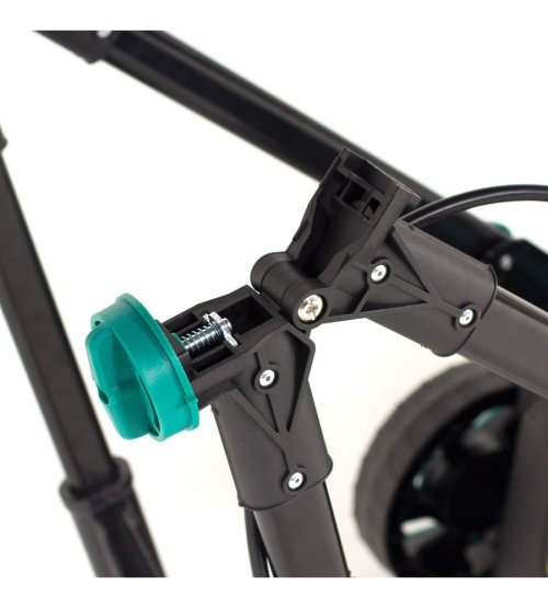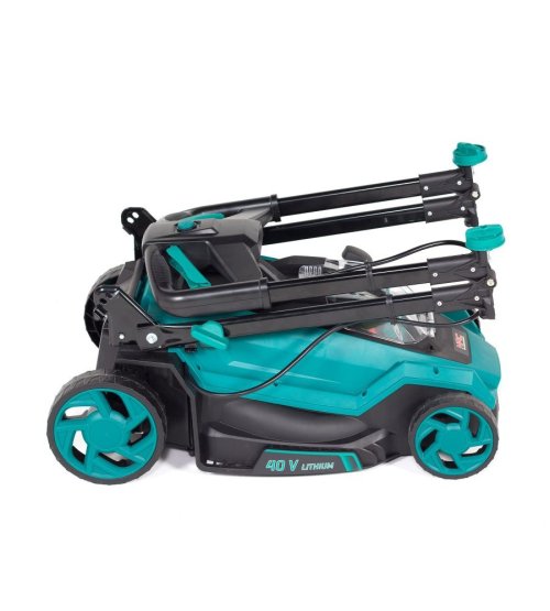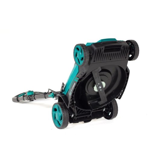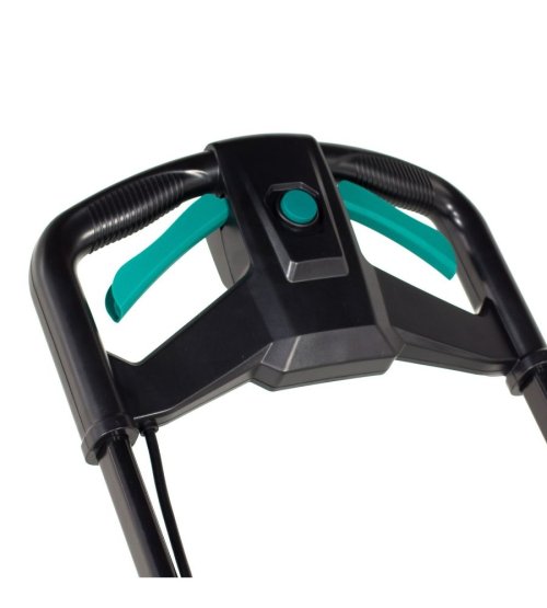 Veľkou výhodou kosačky je jej skladnosť vďaka sklápacím rukovätiam. V hornej časti krytu nájdete praktickú rukoväť , ktorá vám uľahčí a urýchli jej zdvíhanie alebo prenášanie.