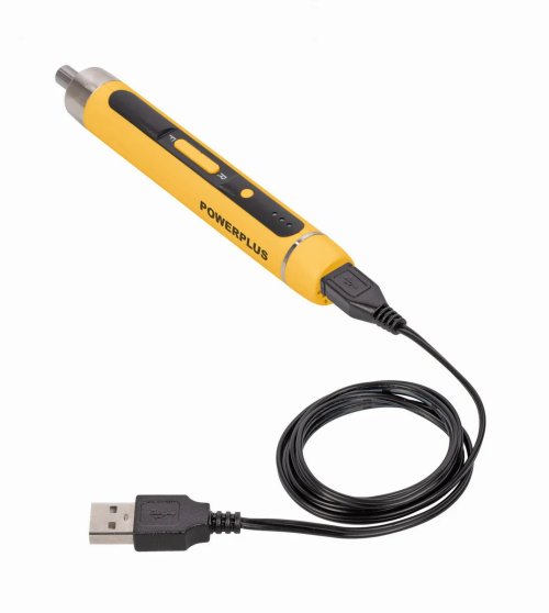 Maximálny krútiaci moment skrutkovača PowerPlus POWX00416 potom činí 0,4 Nm , ktorý je pre bežné skrutkovanie dostačujúce. Vstavaný držiak bitov rapídne urýchli proces výmeny, zatiaľ čo 2 pracovné LED svetlá zaistia, že budete mať vždy jasný výhľad na obrobok. Tento precízny skrutkovač je dodávaný v praktickom kufríku , ktorý obsahuje rovno 15 skrutkovacích bitov , takže sa môžete bez otáľania pustiť do práce ihneď po vybalení. Batéria má napätie 4 V a kapacitu 320 mAh , ktorú dobijete za 2 hodiny pomocou dodávaného USB kábla.