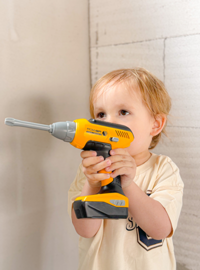 Aku vŕtačka, ktorá vydáva zvuk vŕtania a svieti. Súčasťou sú 4 rôzne nástavce na vŕtanie. Vŕtačka rozvíja deťom motoriku a učí deti manuálnu prácu.