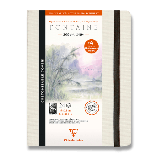 Akvarelový album Clairefontaine Fontaine Hot Pressed má 100% bavlnený za tepla lisovaný papier, ktorý je vhodný na detailné akvarelové práce ako sú portréty.