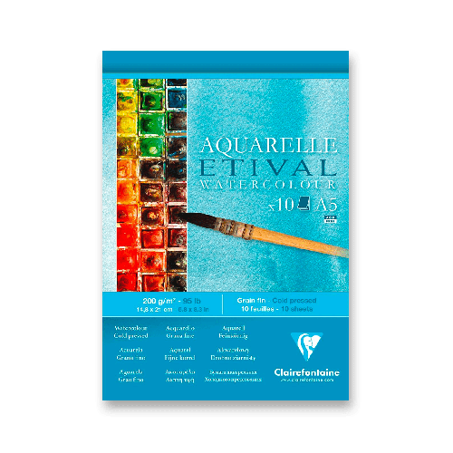 Akvarelový blok Clairefontaine Etival Cold Pressed obsahuje umělecký papír Etival vyrobený ze 100% celulózy se zesíleným šlichtováním a lisovaný za studena.