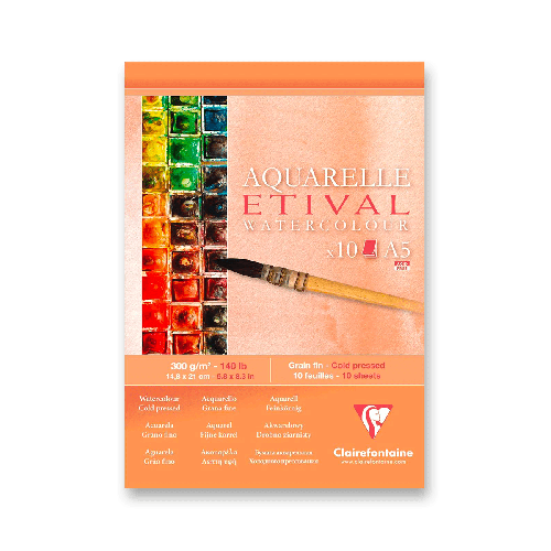 Akvarelový blok Clairefontaine Etival Cold Pressed obsahuje umělecký papír Etival vyrobený ze 100% celulózy se zesíleným šlichtováním a lisovaný za studena.