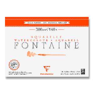 Akvarelový blok Clairefontaine Fontaine Hot Pressed s rozmermi 26 x 36 cm má 100% bavlnený papier, ktorý je za tepla lisovaný.