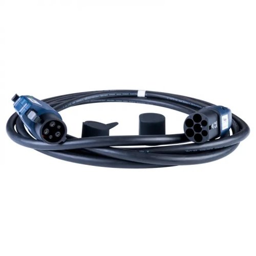 Kábelzástrčka #1 Konektor Type 1 (J1772) samica Kábel zástrčka #2 Konektor Type 2 (IEC 62196-2) samec Materiál kábla Meď Prierez vodiča 3 x 6 mm2 + 2 x 0.5 mm2 Izolačný materiál TPE Materiál ABS Farba produktu Čierna, modrá