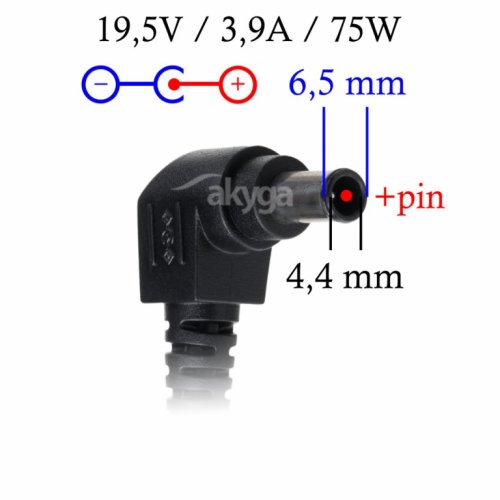 Akyga AK-ND-19 je 75W adaptér pre notebooky značky Sony. Je kompatibilný so všetkými 19,5 V/3,9 A modelmi s 6,5 * 4,4 mm nabíjačkou.