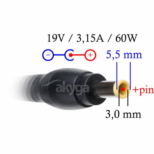 Akyga AK-ND-13 je 60W adaptér pre notebooky značky Samsung. Je kompatibilný so všetkými 19V/3,15A modelmi s 5,5*3 mm nabíjačkou.