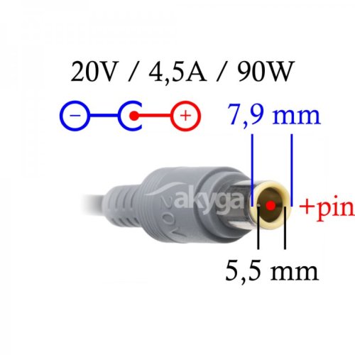 Akyga AK-ND-18 je 90W adaptér pre notebooky značky Lenovo. Je kompatibilný so všetkými 20V/4,5A modelmi s 7,9*5,5 mm nabíjačkou.