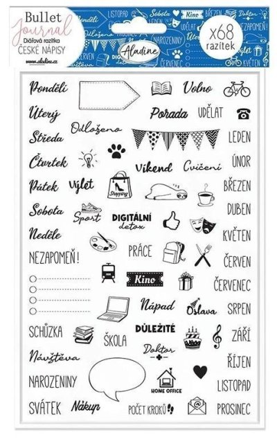 Súprava originálnych pečiatok na výrobu rodinného kalendára alebo na dotvorenie vlastného diára. Celoročné témy aktivít celej rodiny s českými textami sa dajú využiť aj na zábavné plánovanie s malými deťmi, budujú slovnú zásobu na tému rodina. Možno ich využiť aj na celý rad spoločných tvorivých aktivít. Sada obsahuje 68 ks pečiatok. Rozmer hárku je 13,2 x 19,2 cm.
