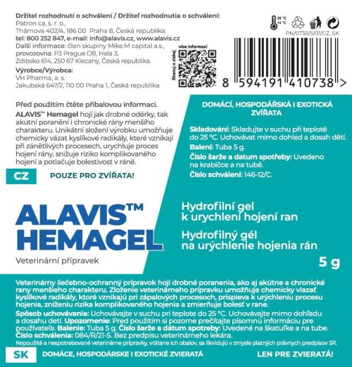 Upozornenie : Prípravok je autosterilný - je možné ho po otvorení používať po celú dobu použiteľnosti. Pri použití ALAVIS™ Hemagelu neboli popísané žiadne vedľajšie účinky typu alergií, zvýšenie bolestivosti a pod., ani žiadne ďalšie kontraindikácie. Liek sa nesmie používať po uplynutí doby použiteľnosti vyznačenej na tube. V prípade výskytu vedľajších nežiaducich účinkov (zvýšená bolestivosť, začervenanie a pod.) prerušte liečbu a poraďte sa s veterinárnym lekárom. Prípravok nie je určený na vnútorné použitie.