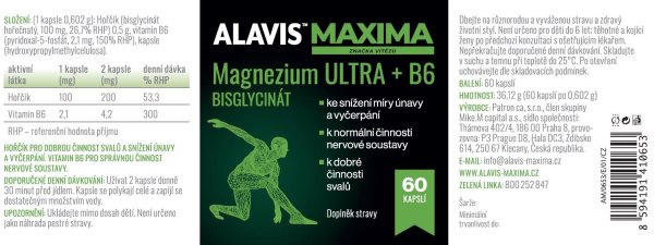 Výživový doplnok ALAVIS™ MAXIMA Magnézium ULTRA + B6 prináša horčík vo forme bisglycinátu horečnatého obohatený o vitamín B6 (pyridoxín). Tieto dve zložky pôsobia synergicky a prinášajú rýchlu pomoc pri disbalancii organizmu.