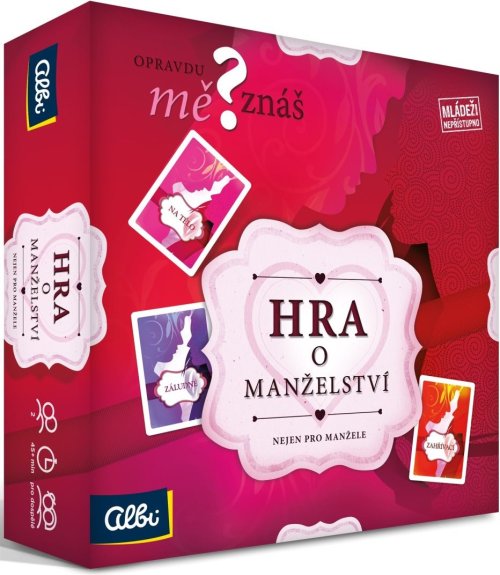 Ako dobre poznáte svojho partnera či partnerku? Aké obľúbené jedlo má rád alebo rada? Aké sú jeho a jej tajné sny? Hra o manželstve vám prináša dokopy 675 otázok, vrátane vtipného kreslenia. Otázky sú rozdelené do troch kategórií. Pomocou otázok zahrievacích, zákerných a otázok na telo zistíte, ako dobre sa poznáte a po čom Váš partner alebo partnerka túži. Cieľom hry je odpovedať na otázky tak, ako odpovie Váš partner alebo partnerka na otázku a zároveň sa v odpovediach zhodnúť. Nejde o to, za každú cenu vyhrať, ale užiť si príjemnú zábavu. Napriek tomu na víťaza čaká zaslúžená odmena...