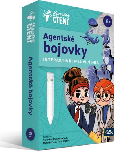 UPOZORNENIE: Táto hra funguje iba s elektronickou ceruzkou ALBI (nie je súčasťou balenia). S interaktívnou hrou Agentské bojovky z edície Čarovné čítanie sa z detí na chvíľu stanú agenti, ktorí si môžu vybrať jednu z troch bojovkových hier na doma, na prechádzku alebo si zahrať nočnú bojovku. Na konci každej hry môžu navyše rodičia dať deťom ako odmenu diplomy, ktoré sú zadarmo na stiahnutie v prílohe. V tejto hovoriacej hre sa deti naučia napríklad šifrovať tajné správy, vysielať morseovku, pracovať s detektorom lži a odpočúvacím zariadením. Súčasťou balenia je aj Agentská príručka, v ktorej sa deti dozvedia, čo má správny agent vedieť. Hra obsahuje cez 800 zvukových stôp. Obsah balenia: hracie karty, šifrovací kotúč, kartu s morseovkou, odpočúvacie a nahrávacie žetóny, šnúrku na zavesenie Albi ceruzky na krk, látkové vrecko na uloženie komponentov a pravidlá. Ilustrácia: Gabriela Hloz Koncept a text: Jana Hanzlíčková Špačková Nahovorili: Veronika Khek Kubařová, Matúš Ruml, Karel Dlabač Kniha vznikla v spolupráci so štúdiom Beep. Kúzelné čítanie je unikátny výukový systém, ktorý vám prináša množstvo informácií a zábavy. Stačí, ak sa ľahko dotknete elektronickou ceruzkou obrázku alebo textu, ozve sa príslušná informácia, zvuk alebo hudba. Kúzelné čítanie je určené deťom v predškolskom veku, ako aj deťom starším, ale bezpochyby zaujme aj dospelých. Vďaka špeciálnej technológii môžu knihy plne využívať aj deti v predškolskom veku, ktoré ešte čítať nevedia. Samy si tak môžu „prečítať“ rozprávku alebo sa hravou formou naučiť poznávať farby, čísla, písmená či najrôznejšie tvary.