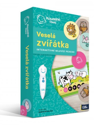 Kúzelné hovoriace pexeso Veselé zvieratká kombinuje precvičovanie vizuálnej a posluchovej pamäte detí. Deti sa tak budú učiť rozoznávať zvuky, ktoré nás obklopujú. Ponúka viacero herných variantov. Je možné ho hrať ako klasické pexeso, kedy sú všetky karty otočené obrázkami dole a deti spoznávajú karty podľa zvuku. Jednoduchším variantom je, že sa otočí iba polovica kartičiek a deti hľadajú druhú kartičku podľa zvuku.