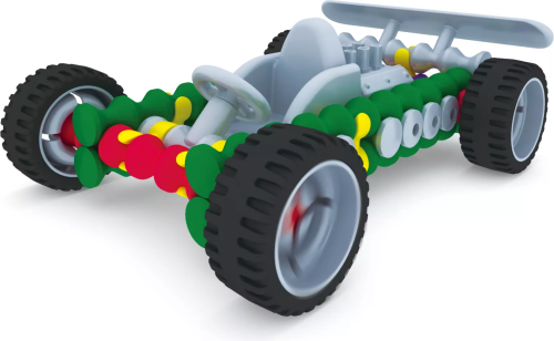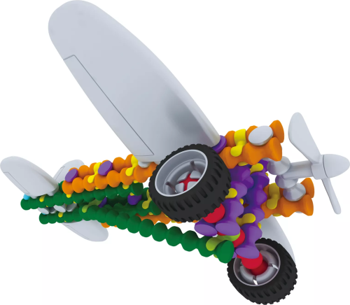 Zo stavebnice Playstix si môžete ľahko postaviť viac ako 24 rôznorodých modelov, napr. domček, zvieratko, lietadlo alebo rôzne druhy vozidiel s pevnými kolieskami.