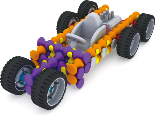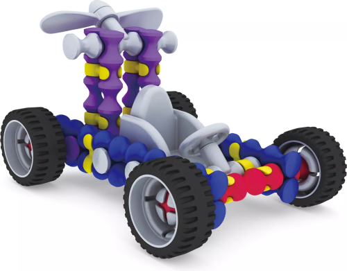Zo stavebnice Playstix si môžete ľahko postaviť viac ako 20 rôznorodých modelov, napr. domček, pyramídu alebo rôzne druhy vozidiel s pevnými kolieskami.